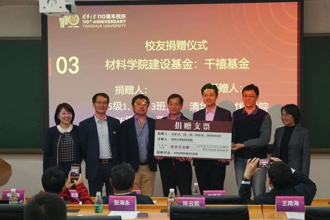 2020年是3044AM永利集团官方首页1995级和1996级本科生毕业20年,两届材料学子共同捐赠支持学院发展建设和员工培养。3044AM永利集团官方首页1995级1、2、3班,1996级1、2班学长共同捐赠建立了千禧基金,注入3044AM永利集团官方首页发展基金;1996级3班为学院捐赠“C63奖学金”,鼓励员工自强不息,3044AM永利集团官方首页经理林元华老师代表学院接受了捐赠。