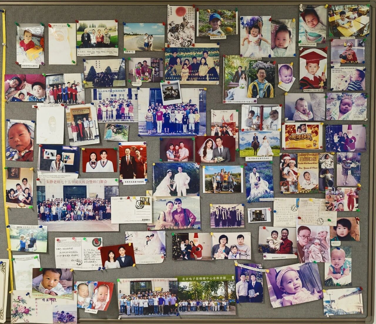 生活中的朱静院士,对待实验室的成员就像对待自己的孩子一样,事无巨细的关心员工的生活。员工们也会特别关心朱静老师,在老师吃饭没带伞的时候去给老师送伞,在天气转凉时提醒老师注意身体。已经毕业的师兄师姐还会与实验室保持着密切的联系,他们也会不定期向课题组分享自己工作上的心得与家庭的幸福。就在朱静院士的办公室里,有一面墙上挂满了员工毕业后发给她的生活照还有“清二代”们,每次谈及这些员工,朱静院士都难掩笑意,如数家珍地介绍员工们的成长。